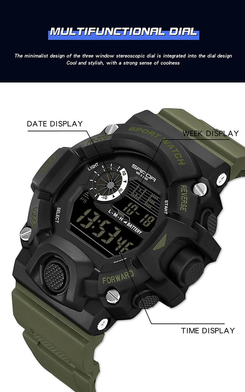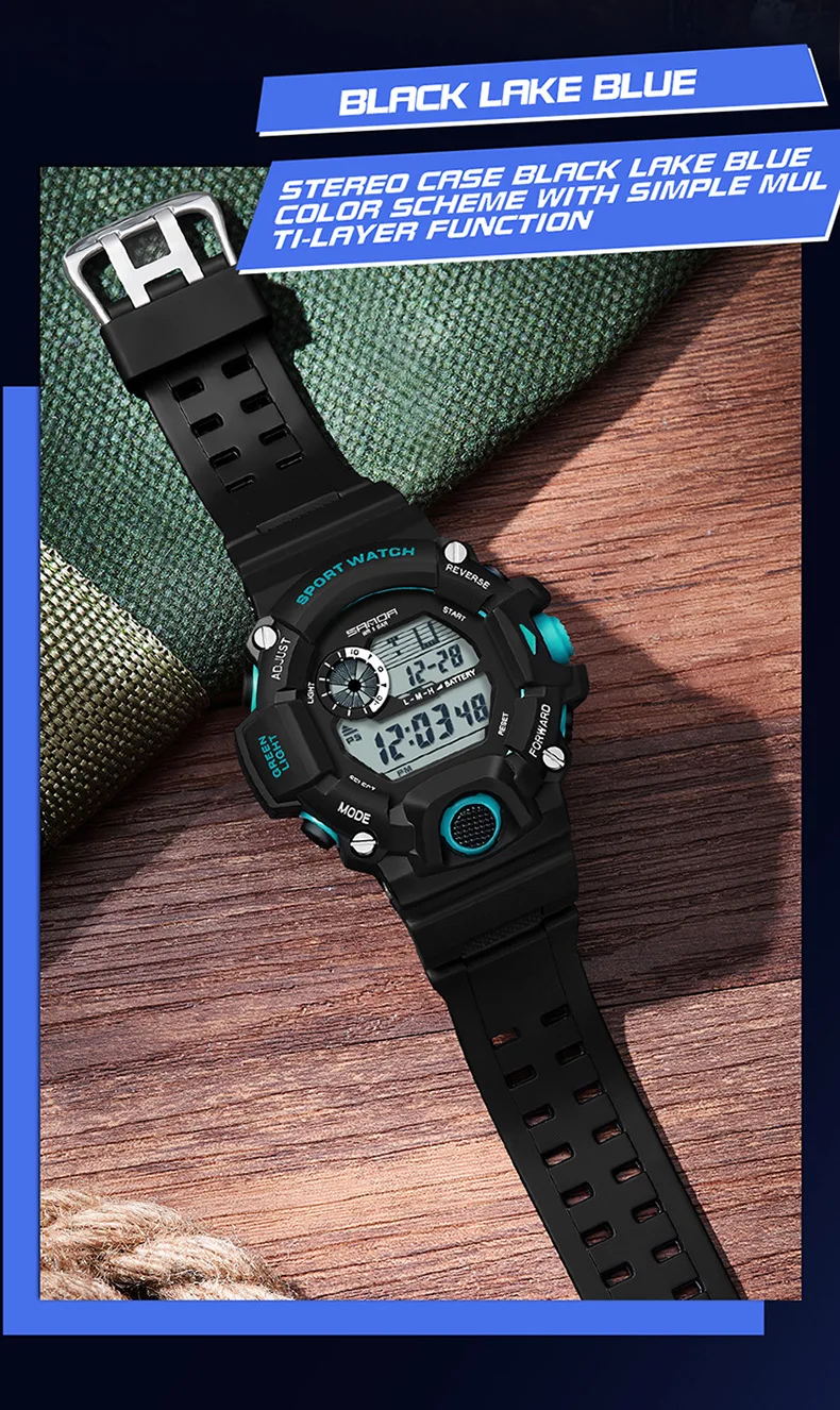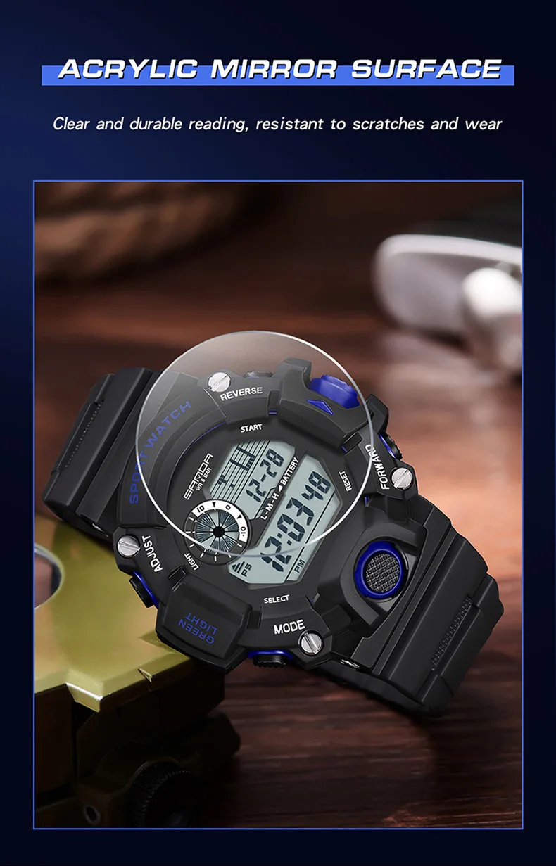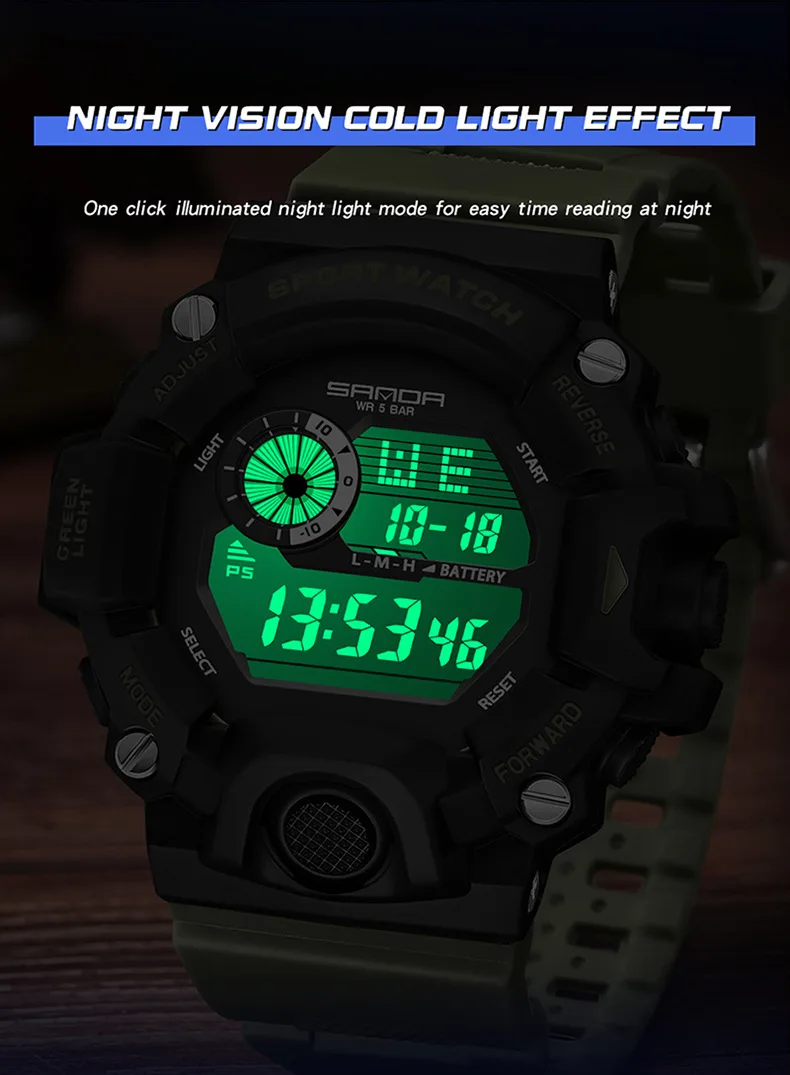 26 mouvement numérique électronique affichage LED lumineuse cadran Sports de plein air étanche hommes montre-bracelet