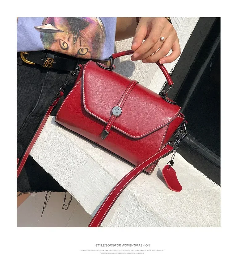 Sacs à main en cuir pour femmes, sac à bandoulière Vintage, petit sac carré cire